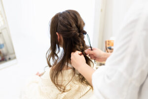 ご利用のお客様は、当日ご自身でヘアアレンジされずに、スプレーなど整髪料をつけずに来店をお願いします。
